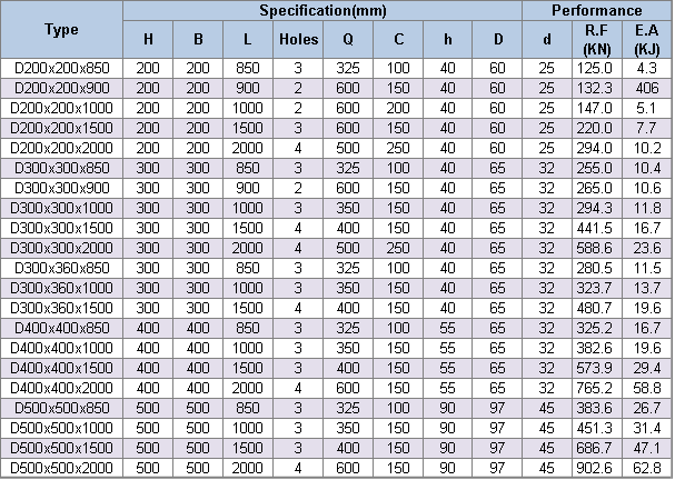 Performance and Dimension of D Type Marine Rubber Fender